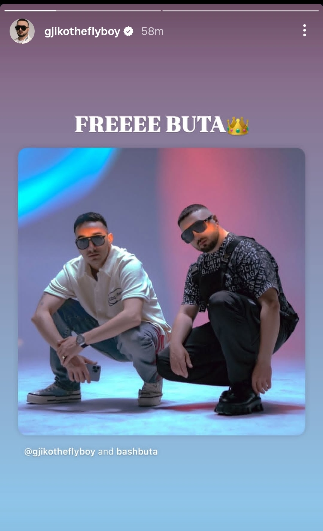 Ndërkohë me një postim pro tij ka dalë reperi Gjiko i cili ka shkruar: ‘Free Buta’