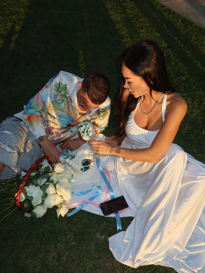 Përmes një postimi në rrjete sociale, ata ndanë fotot nga momenti i zbulimit të gjinisë së bebit, ku mbizotëronin dekorimet në nuanca blu dhe të bardha.
