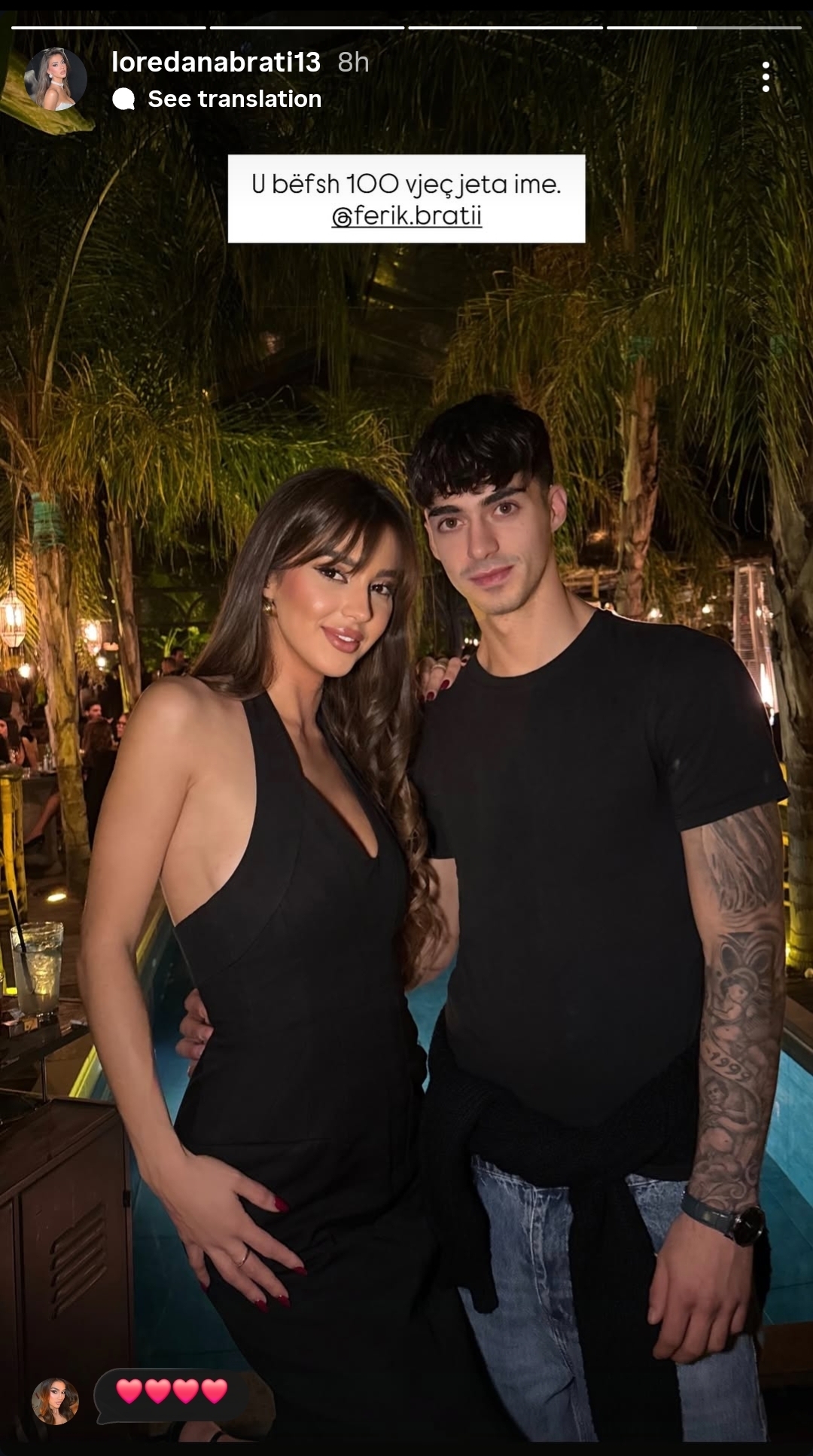 Loredana ka publikuar një foto ku shfaqet ajo krah vëllait të saj, Ferikut. Ata shihen të veshur me ngjyrë të zezë, në një atmosferë festive në një ambient të këndshëm.