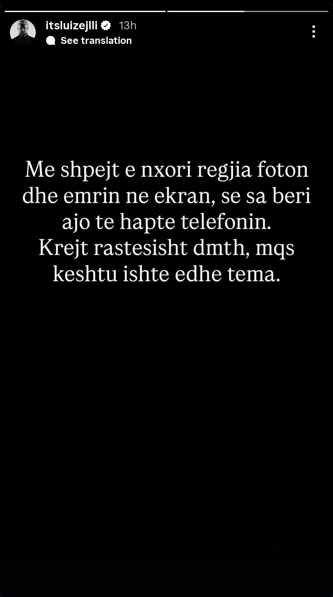 Pak pas transmetimit, reagimi i Luiz Ejllit nuk vonoi. Ai publikoi në Instastory një shkrim me nota ironie, ku shkroi: “Më shpejt e nxori regjija foton dhe emrin në ekran, se sa bëri ajo të hapte telefonin. Krejt rastësisht dmth, mqs kështu ishte edhe tema.”
