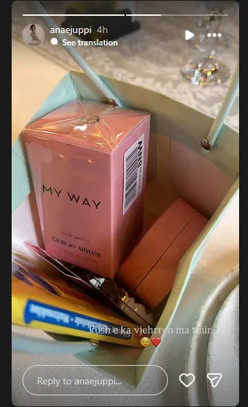 Me mbishkrimin “Kush e ka vjehrrën ma tmiren”, Ana ka shprehur hapur dashurinë dhe mirënjohjen për marrëdhënien e saj me vjehrrën, një gjest që tregon ngrohtësinë e lidhjes mes tyre.